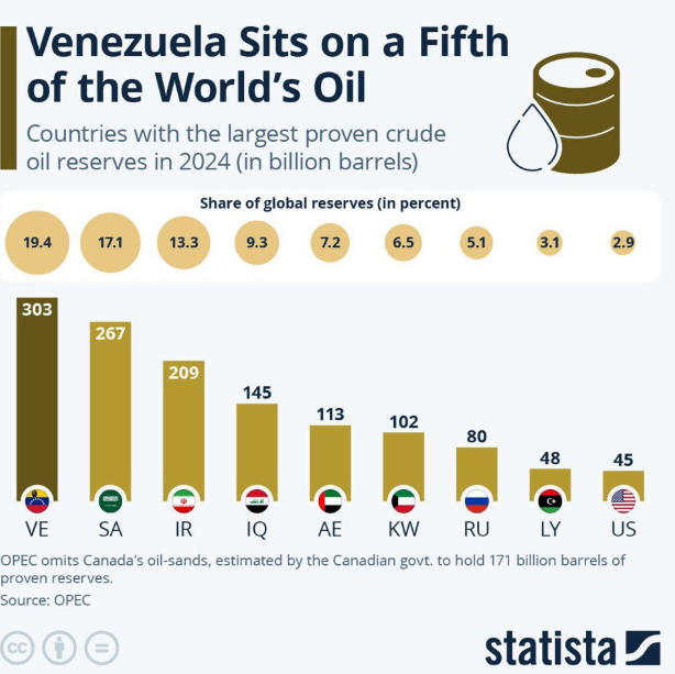 Venezuela holds roughly 20% of the world’s proven oil reserves—by far the largest globally and nearly seven times those of the United States. Yet years of sanctions and severe infrastructure decay have reduced its production to about 700,000 barrels per day, far below its estimated 3 million‑barrel capacity. While a U.S.-led regime change could eventually unlock new supply, any impact on global oil markets, inflation, or the broader economy will take time. Early market reaction reflects this: crude prices are essentially unchanged, though energy equities are showing strength on expectations of renewed investment.